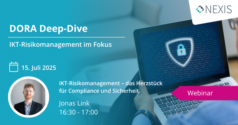 Laden Sie jetzt unser interaktives Webinar mit DORA-Experte Jonas Link herunter und erfahren Sie, wie Sie das IKT-Risikomanagement erfolgreich in der Praxis meistern!